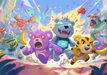 Dieses essbare Tortenbild mit kämpfenden Spielzeug-Bären erinnert an bekannte Arcade- und Nintendo-Spiele, in denen Held:innen in farbenfrohen Arenen gegeneinander antreten.