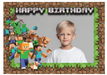 Minecraft Happy Birthday Geburtstag – Essbares Zuckerbild mit Foto, Rechteckig Tortenaufleger - 200.0 G