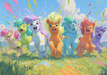 Ein Galopp voller Farben und Freude! Diese lebhafte Pony-Gruppe galoppiert fröhlich durch eine Blumenwiese – ein Bild, das direkt aus der fantasievollen Welt von My Little Pony stammen könnte. Ein essbarer Tortenaufleger, der den Kindergeburtstag zu einem kunterbunten Highlight macht!