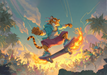 Dieser essbare Tortenaufleger bringt urbanen Dschungel auf Ihre Geburtstagstorte! Ein Tiger mit Skateboard in Flammen, mitten im Sprung – ein Bild wie aus einem actionreichen Animationsfilm.