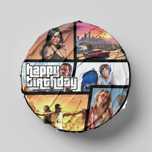 GTA Theft Auto – essbare Geburtstag Deko mit eigenem Foto, Runde Tortenaufleger - 400.0 G